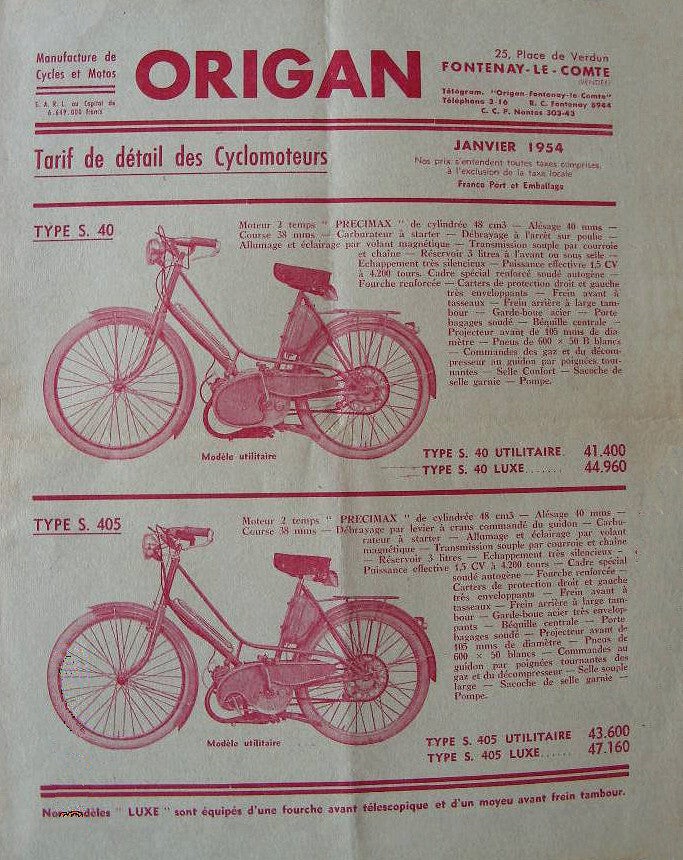Origan, la première marque créée par les frères Guiller, distribuera leurs motos sous ce nom jusqu'en 1954.