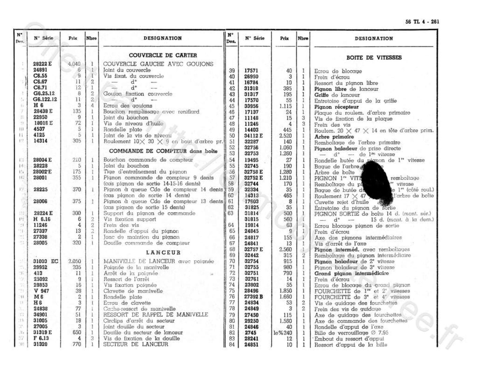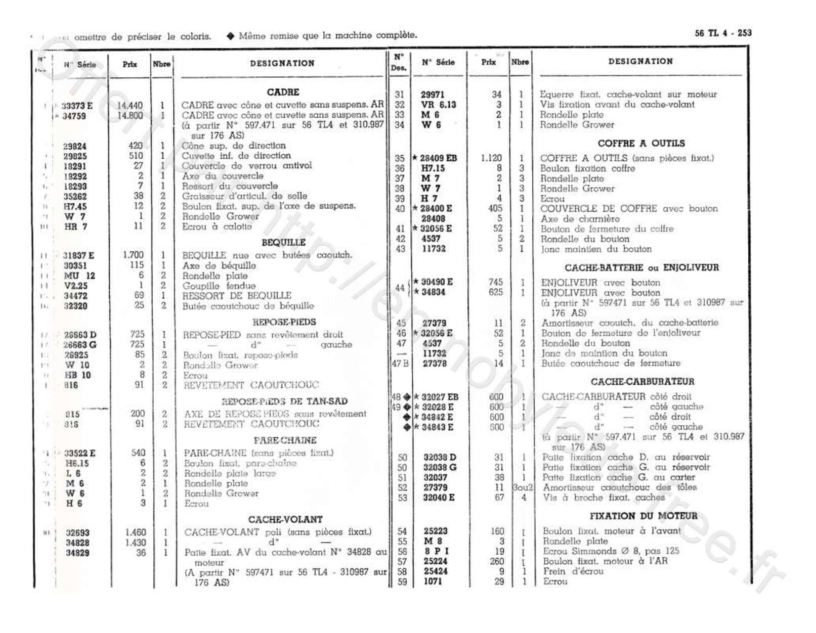 Catalogue pièces détaché Peugeot 125 P56 TL4