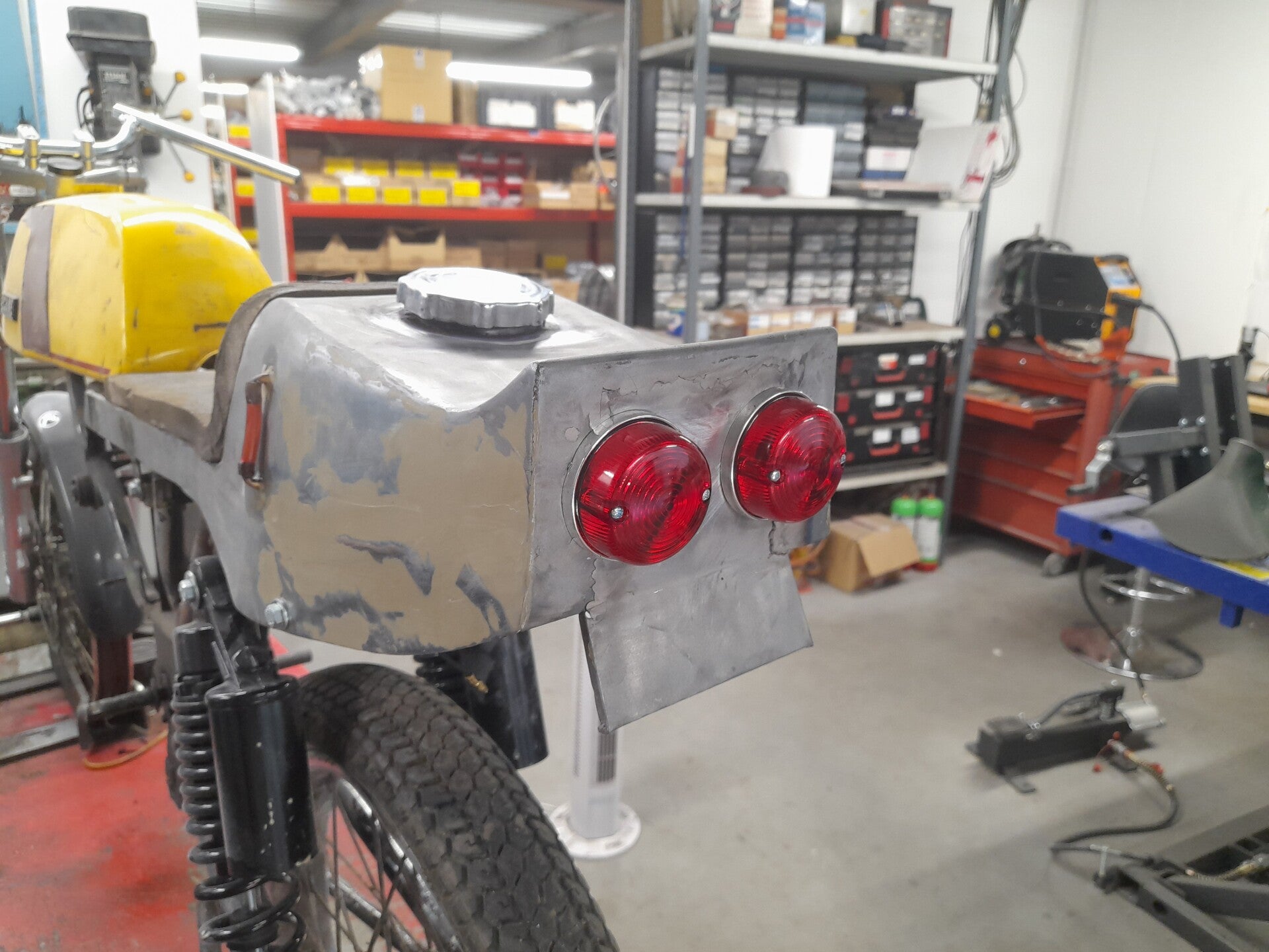 Son réservoir d'huile va servir de réservoir d'essence, lui aussi permettra d'augmenter l'autonomie.