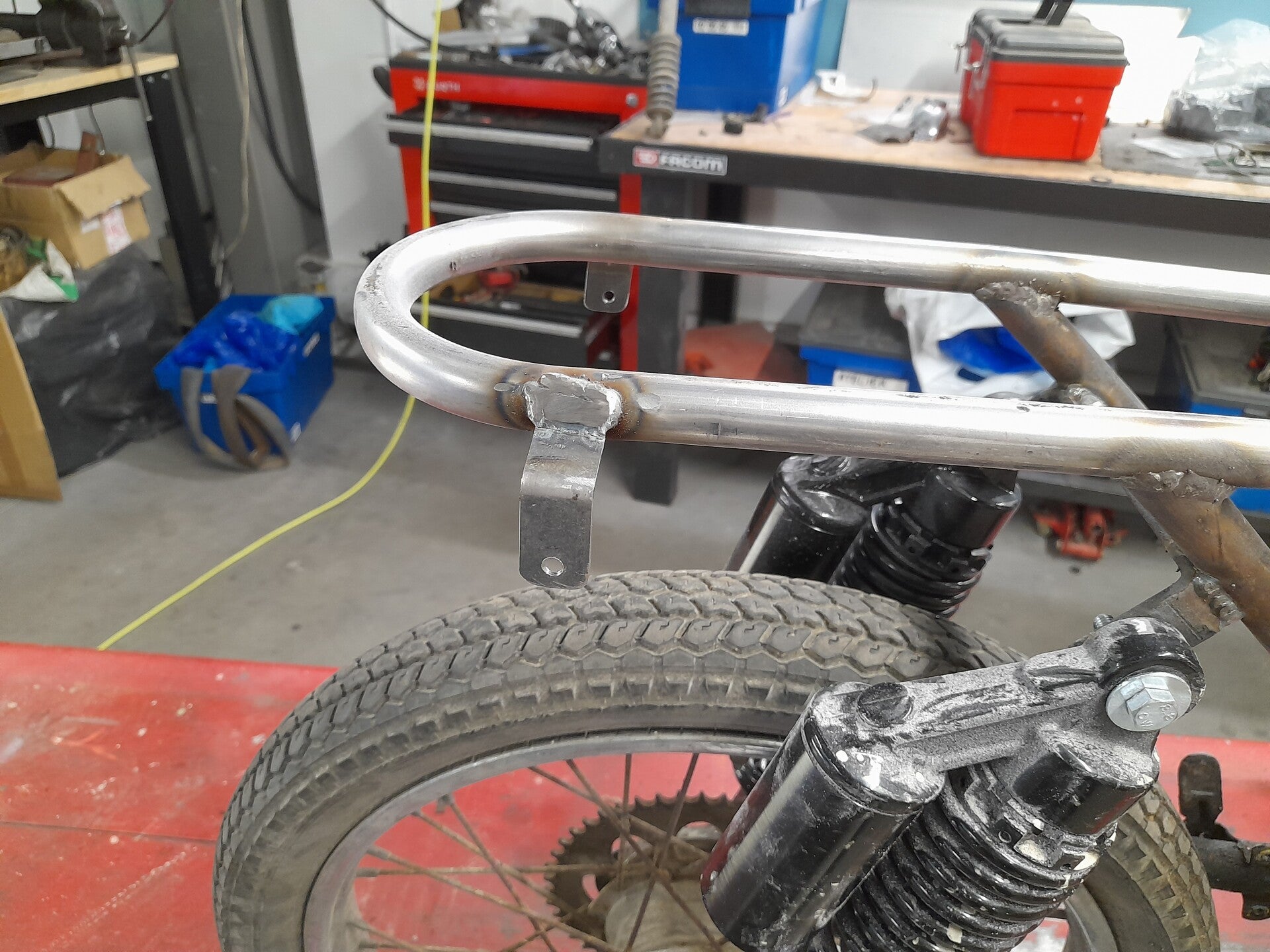 - Pose d'un barre de renfort sous la selle (elle se déformait un peu sous notre poids plume !!)