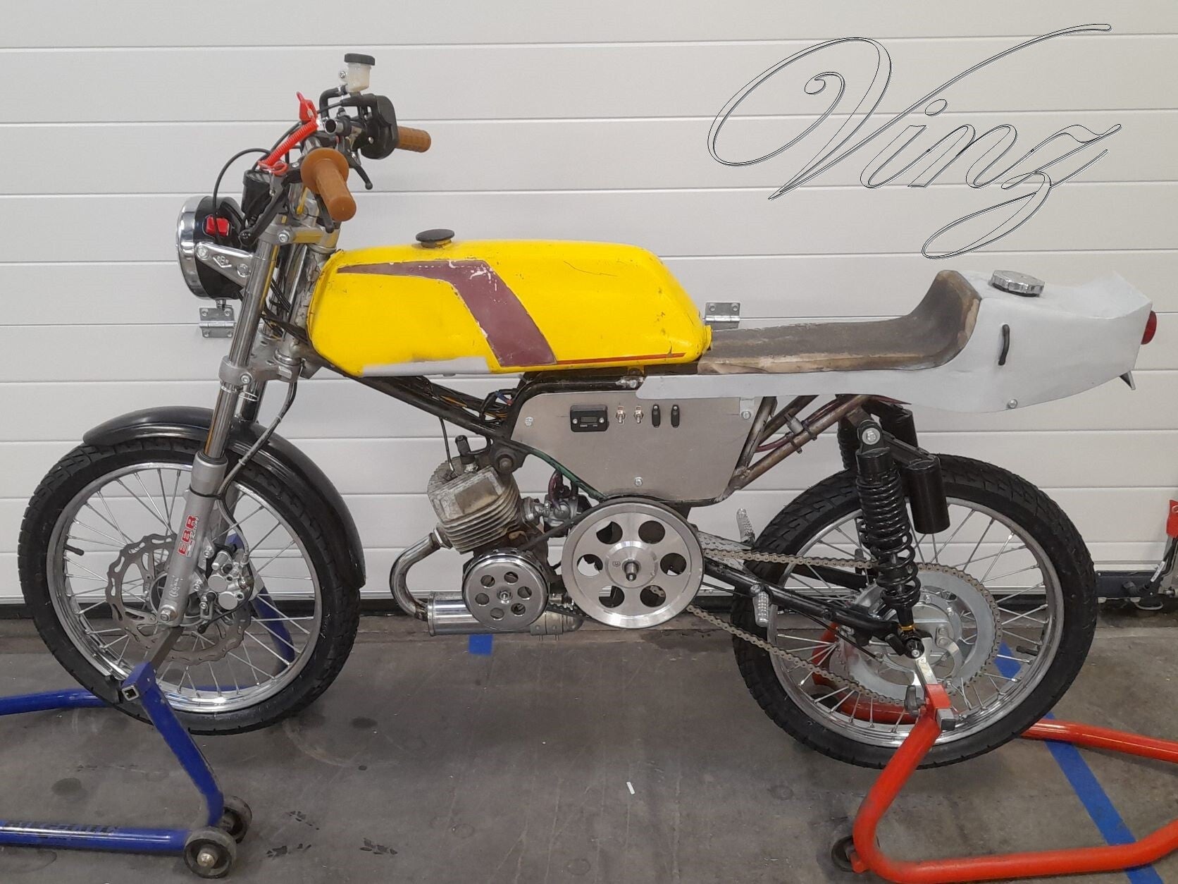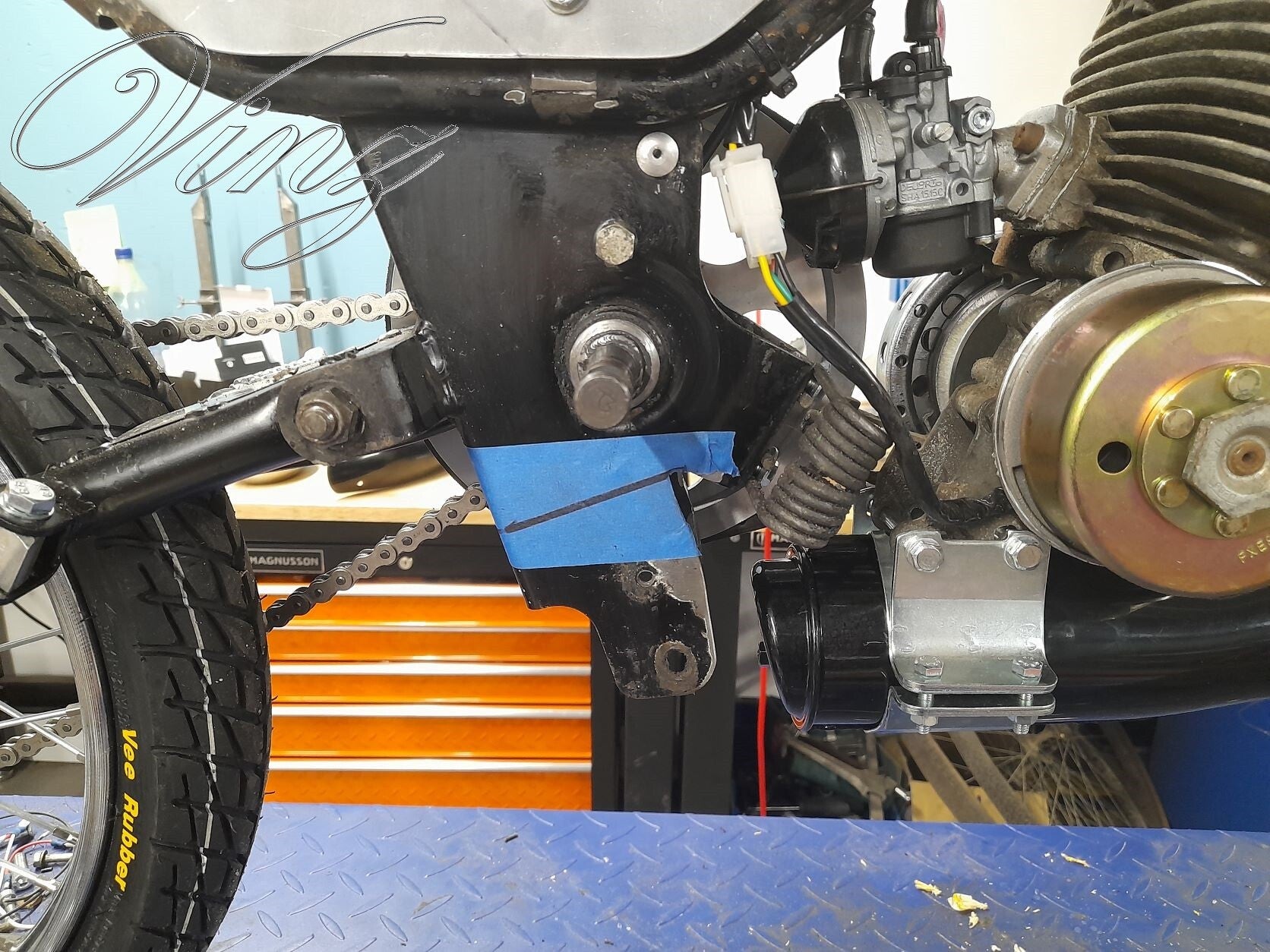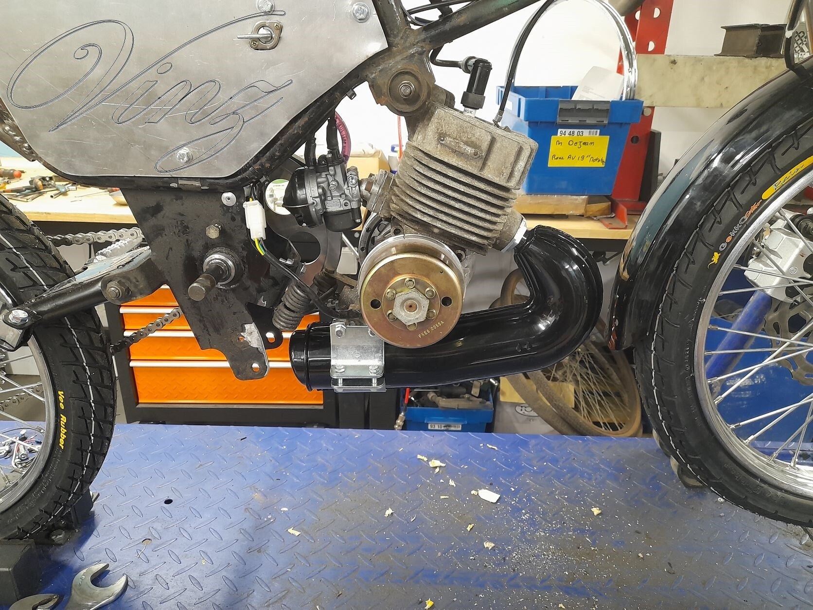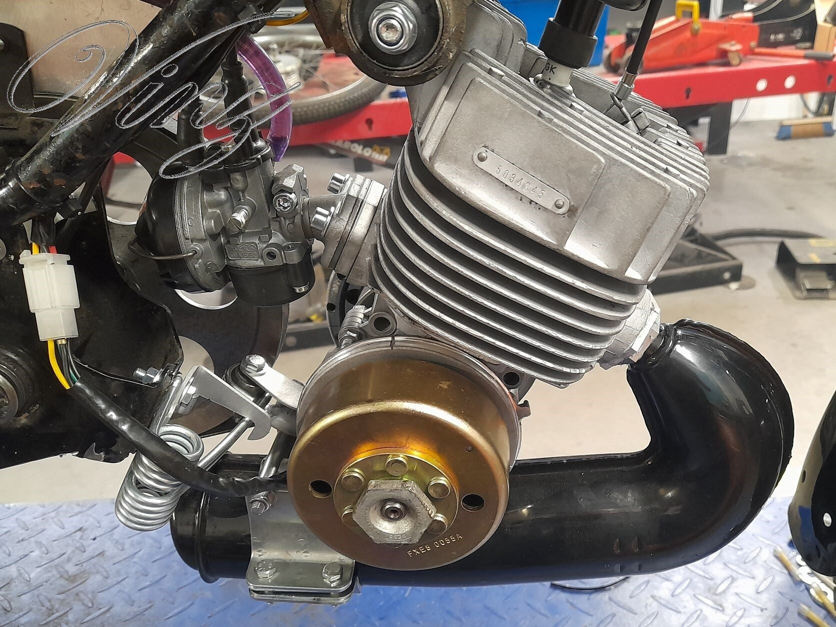 J'ai donc monté un moteur AV10 qui consomme plus mais équipé d'un démarrage au kick car sur le parcoure nous devons nous arrêter à trois épreuves.
