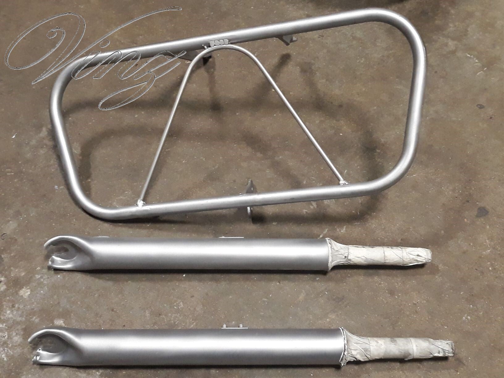 Toutes les pièces ont été sablées et microbillées, les pattes en métal ont été repeintes.