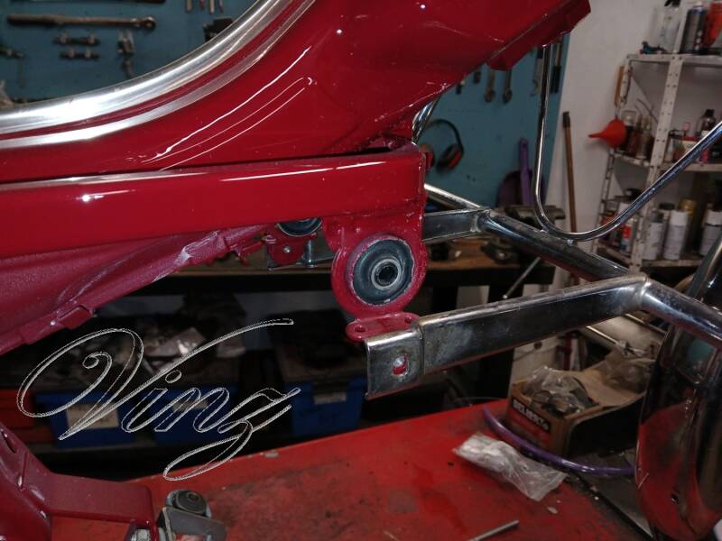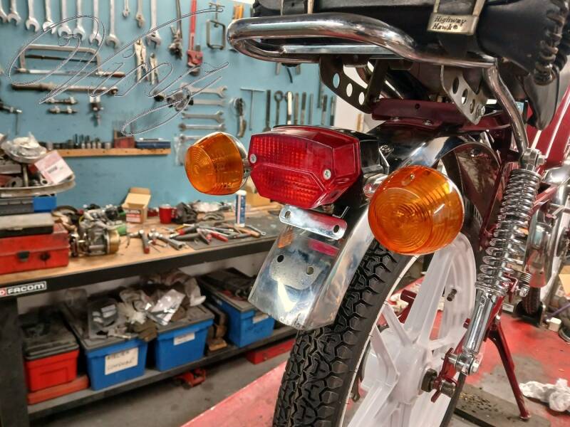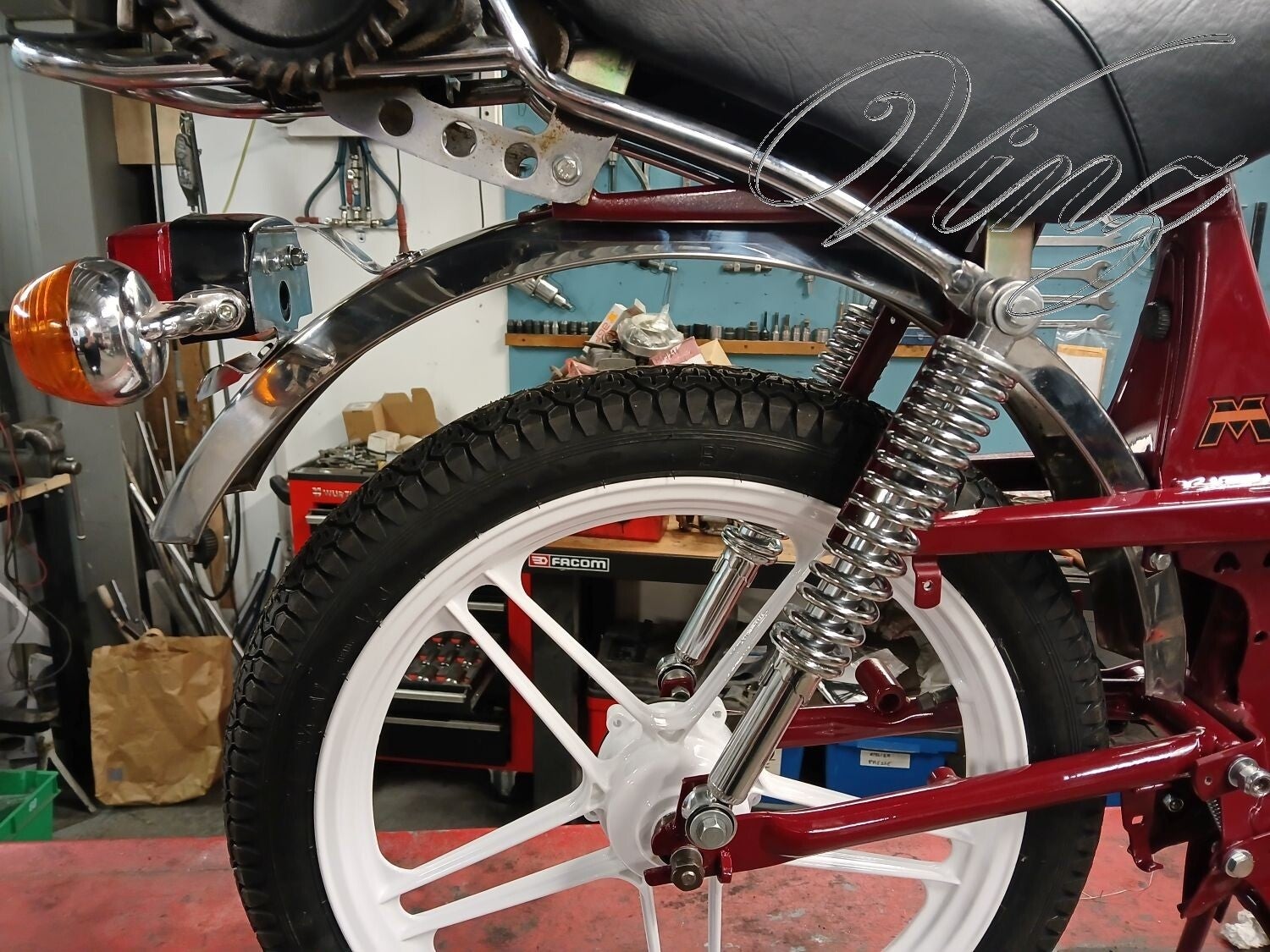 Polissage du garde boue arrière, sablage et peinture du renfort de garde boue et montage définitif avec le feu et les clignotant.