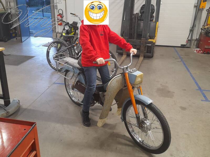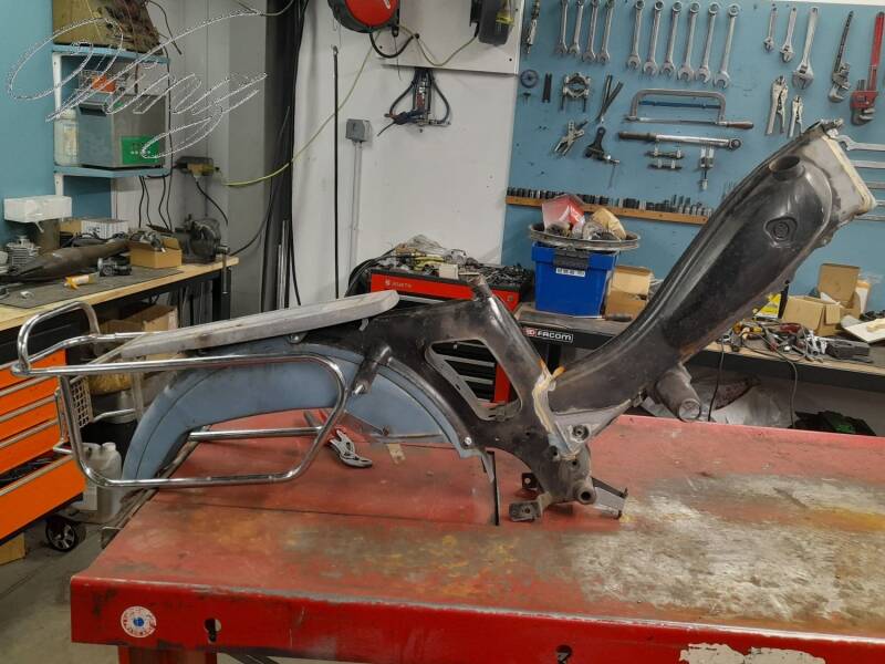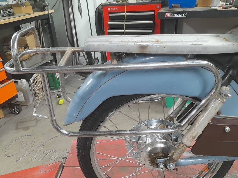 La partie cycle est presque complète. Les roues sont provisoire, elles viennent d'un autre projet. Il faut modifier les fixation du porte bagage.