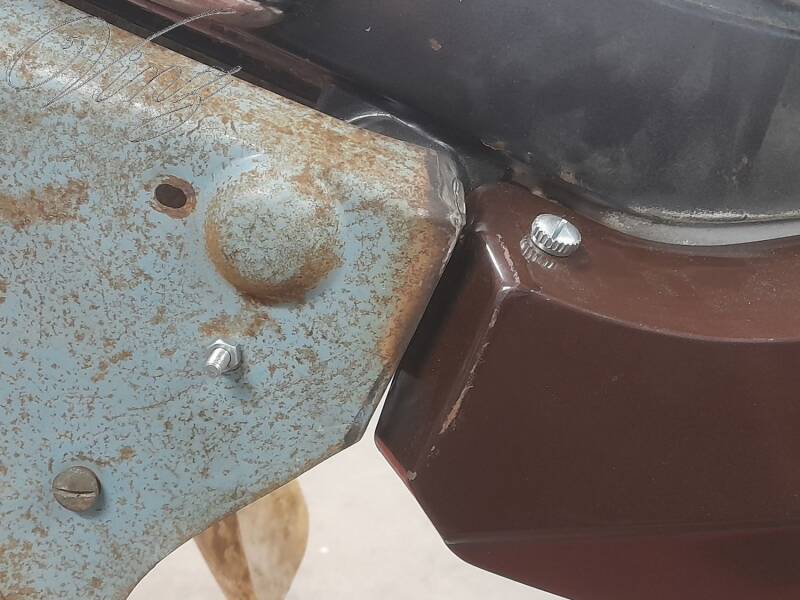Sur le cadre de 881, il manque la butée de direction ainsi que le goujon de fixation de pare jambe.