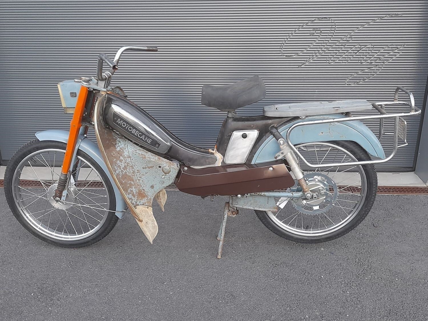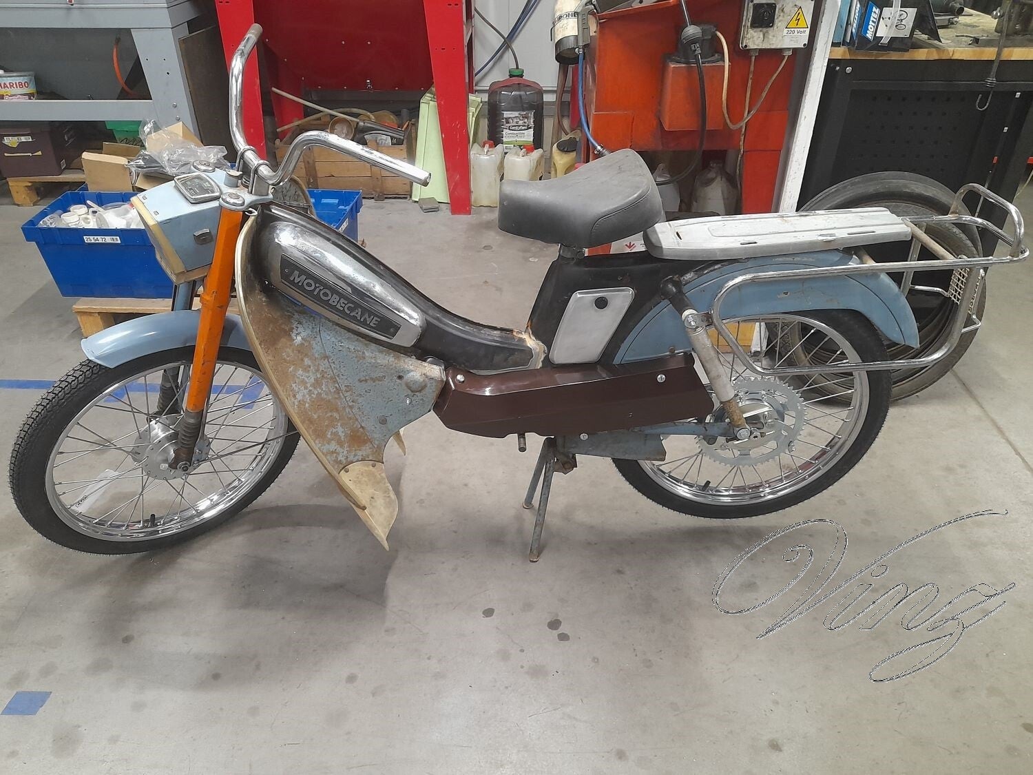 En même temps je meule les soudures du porte bagage.