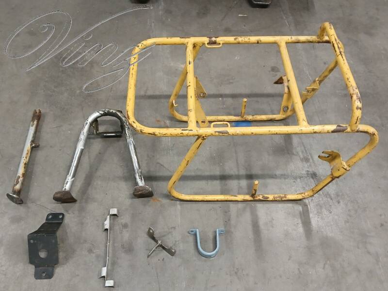 le bon garde boue avant, les pare jambes, la béquille centrale d'utilitaire, la béquille latéral et couvercle de boite à outil.