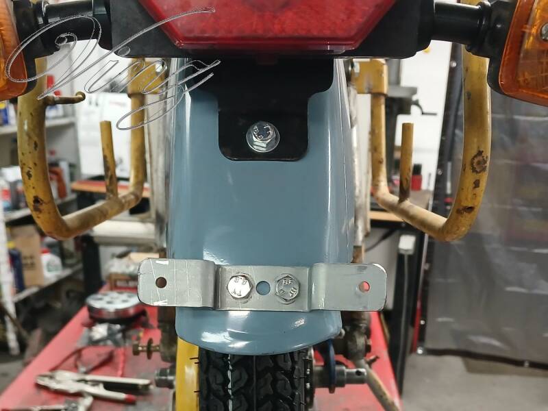 Pose du support de plaque d'immatriculation, remplacement des clignotants par des feu bleu.