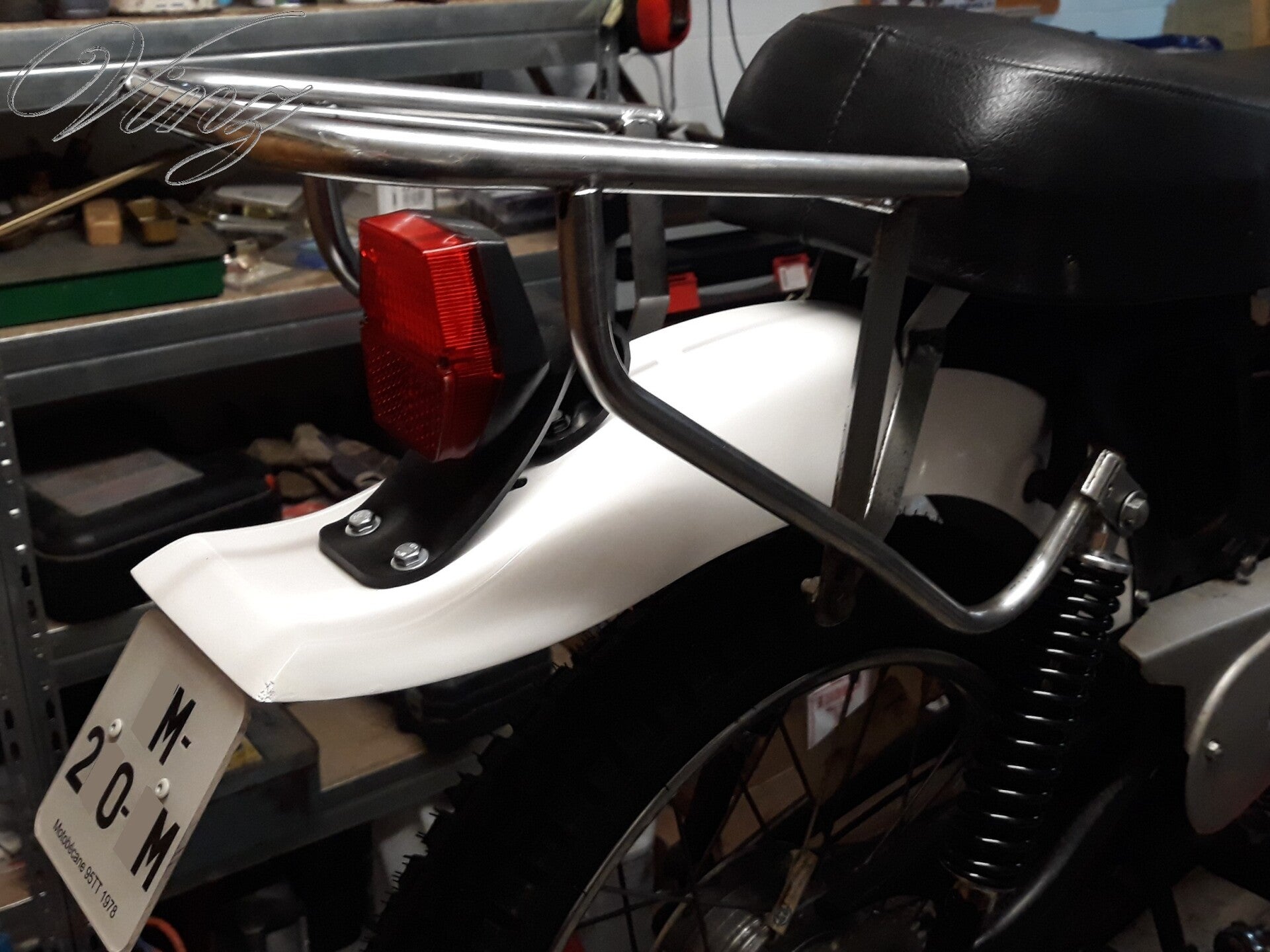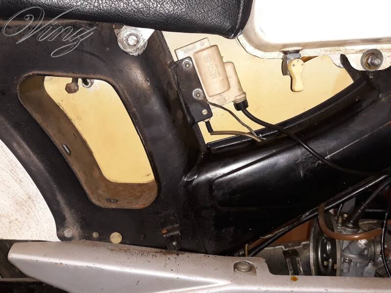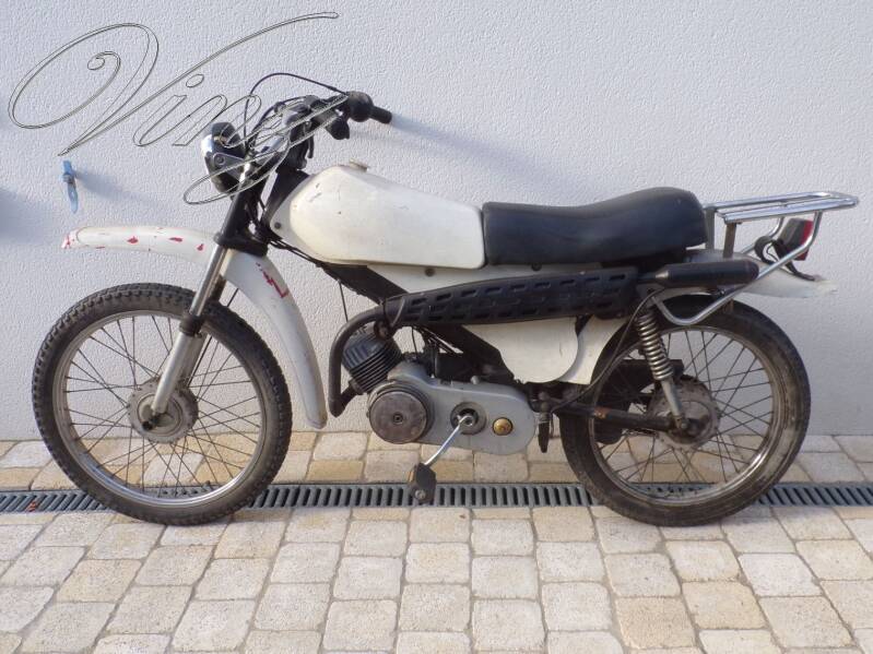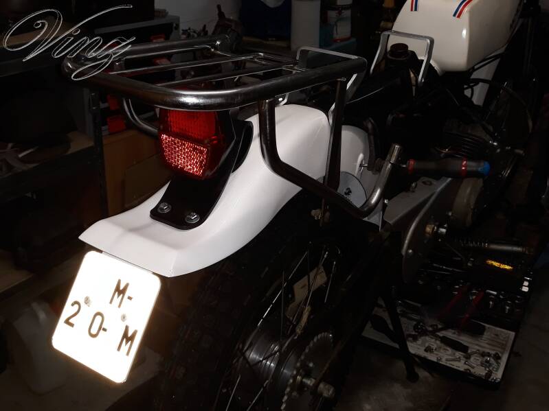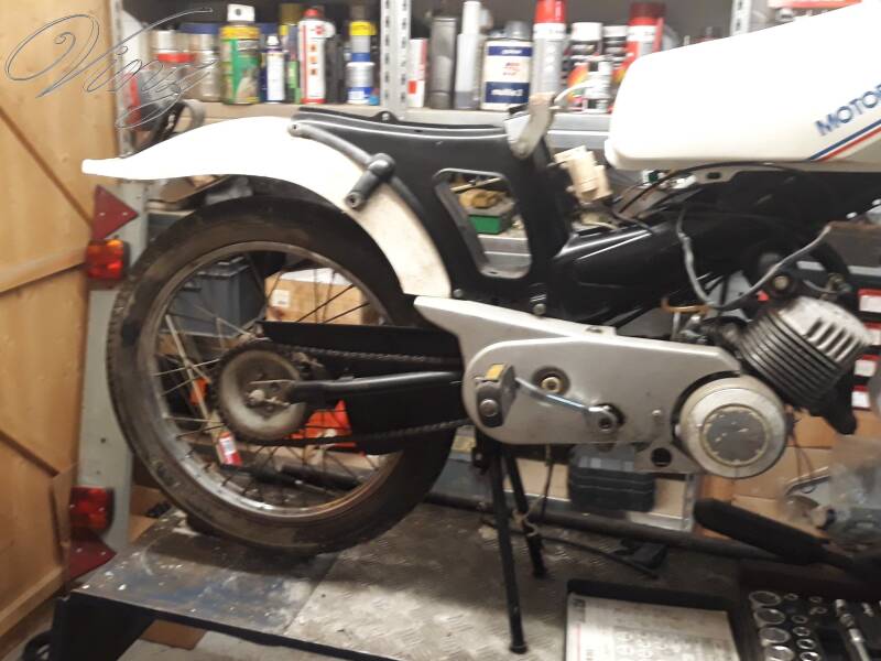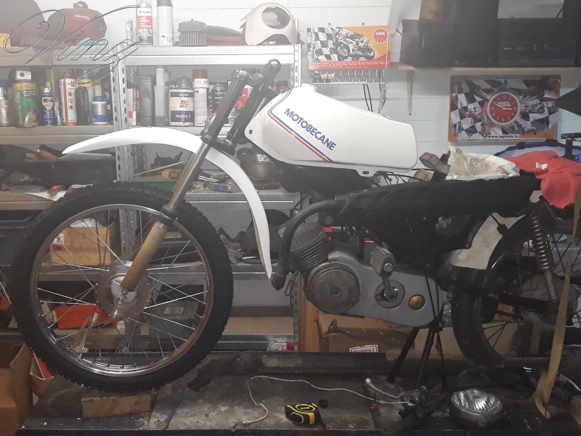La personne a qui je l'ai acheté avais prévu de la restauré complètement et dans ce but il avait réunis pas mal de pièces neuves d'époque (réservoir, plaques sous selle, habillages moteur, poignées de frein, grille de pot).