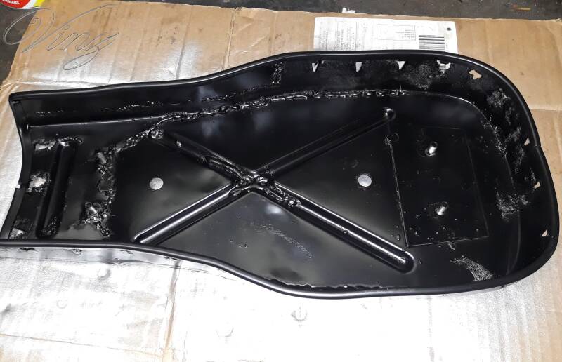Peinture et pose d'un jonc en plastique sur le tour pour ne pas trancher la housse de selle.