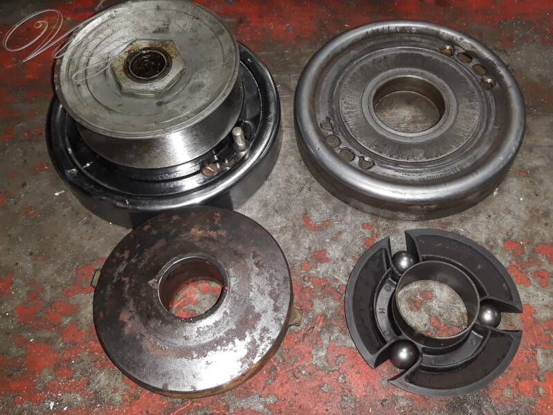Remise en état du variateur: changement de la cloche et du tambour d'embrayage et modification en galet.