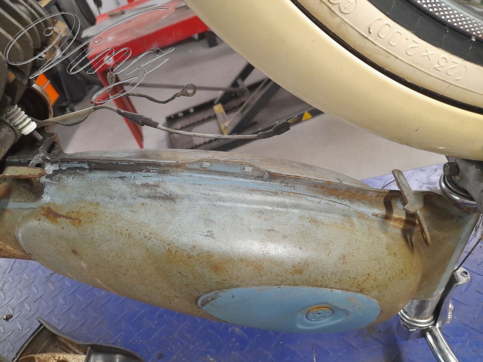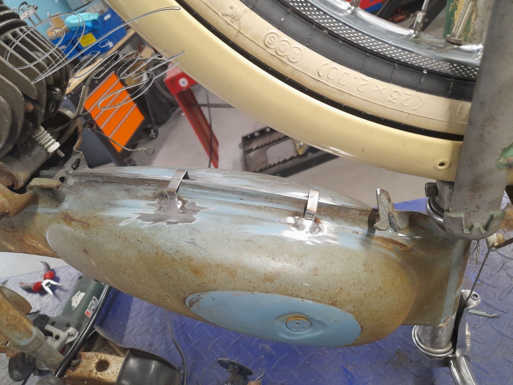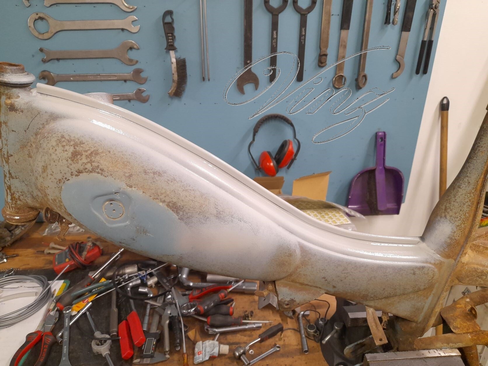 J'ai fait un petit nettoyage du couvre selle et sablé et repeint l'armature.