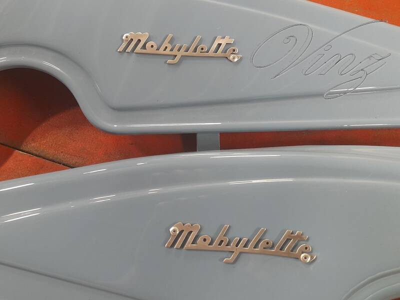Pose du phare, des logos de réservoir et du robinet. Sur le robinet j'ai remis de bouton du vieux robinet.