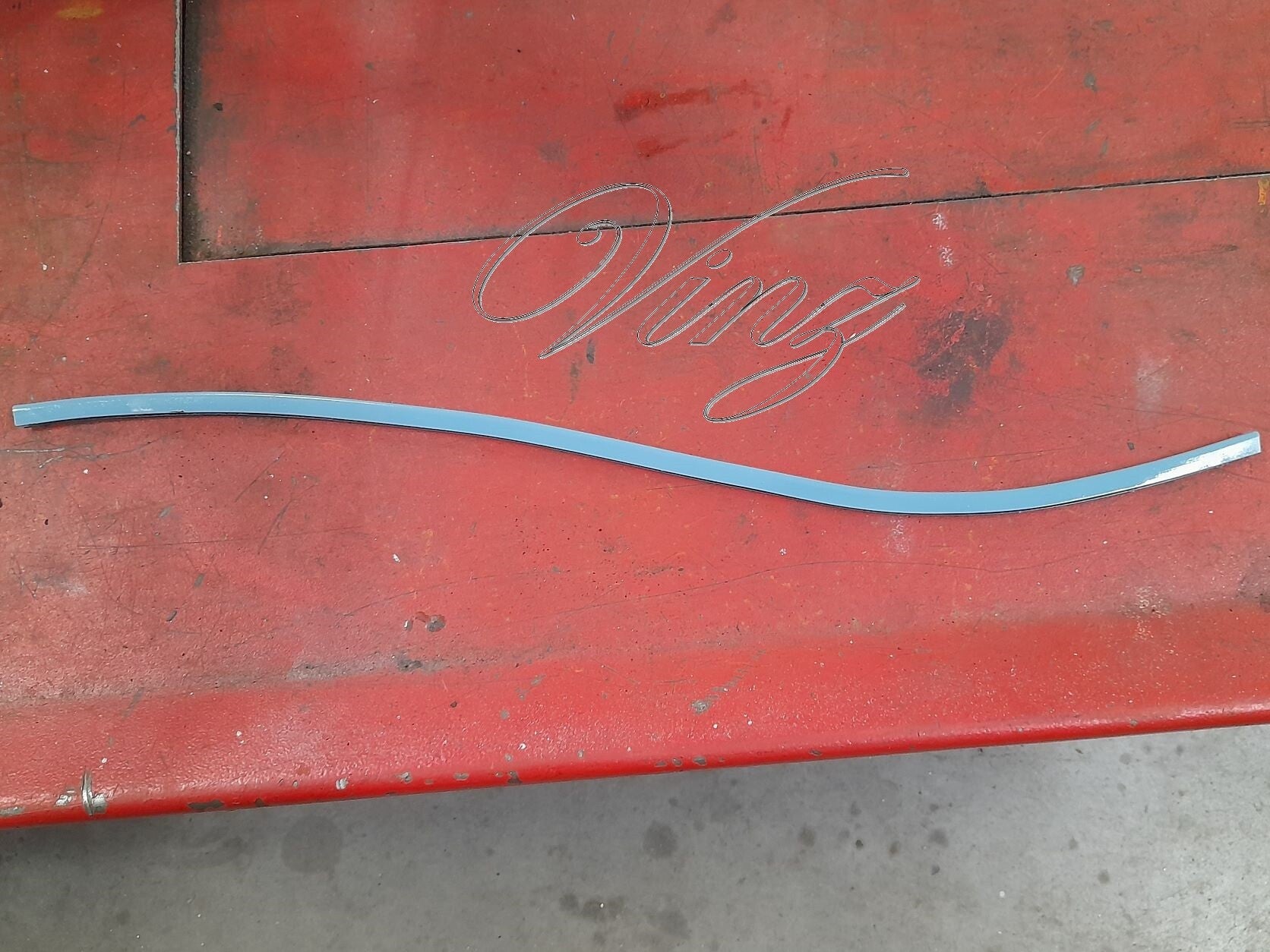 Je l'ai chauffé au décapeur thermique pour qu'il garde la forme puis j'ai appliqué un apprêt spécial plastique puis de la peinture bleu.