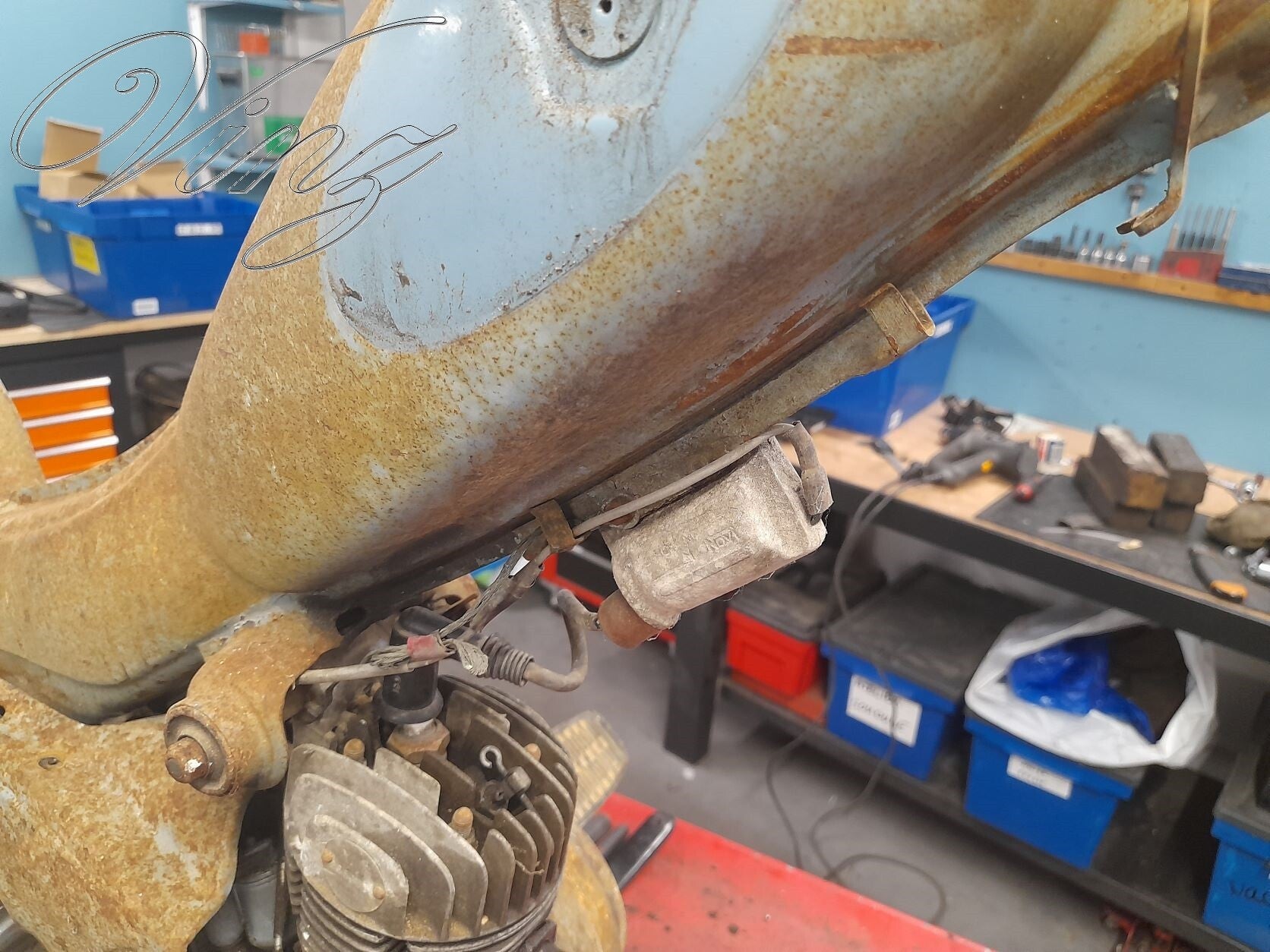 Pour le jonc de réservoir bleu, j'ai pris un jonc noir que j'ai positionné sur un cadre en attente de restauration.
