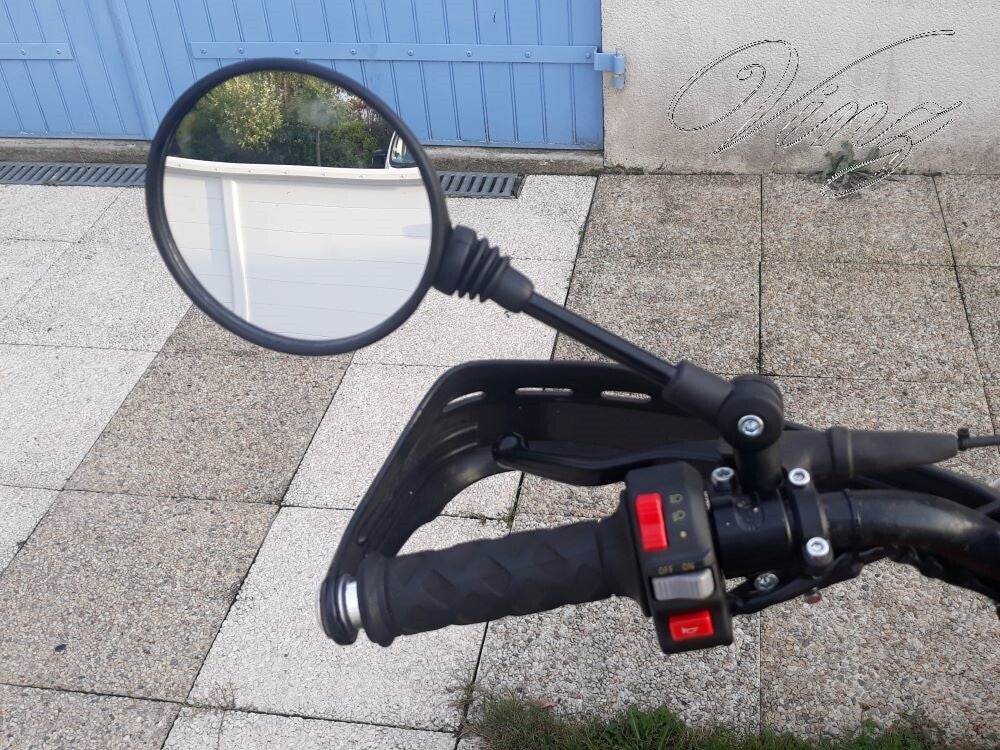 Comme quand on fait du chemin, on utilise quelques bout de route, j'équipe la mob d'un phare, un feu arrière, une plaque d'immatriculation et un rétro pour être en conformité.