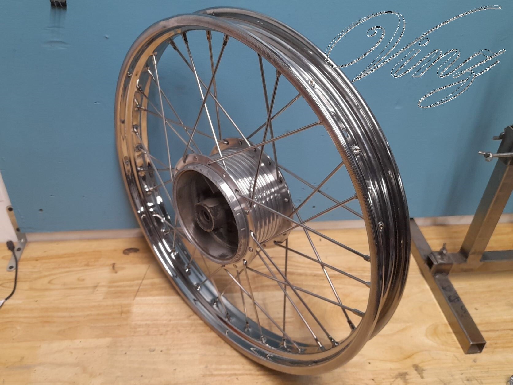 Avec nettoyage et polissage du moyeu, changement des rayons et de la jante.