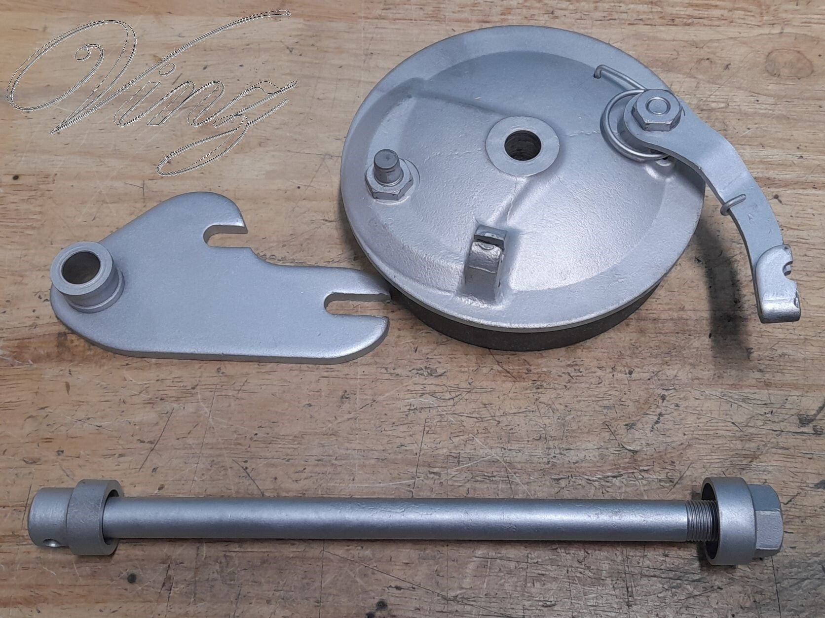 Sablage, peinture, microbillage des éléments de freins et moyeu.