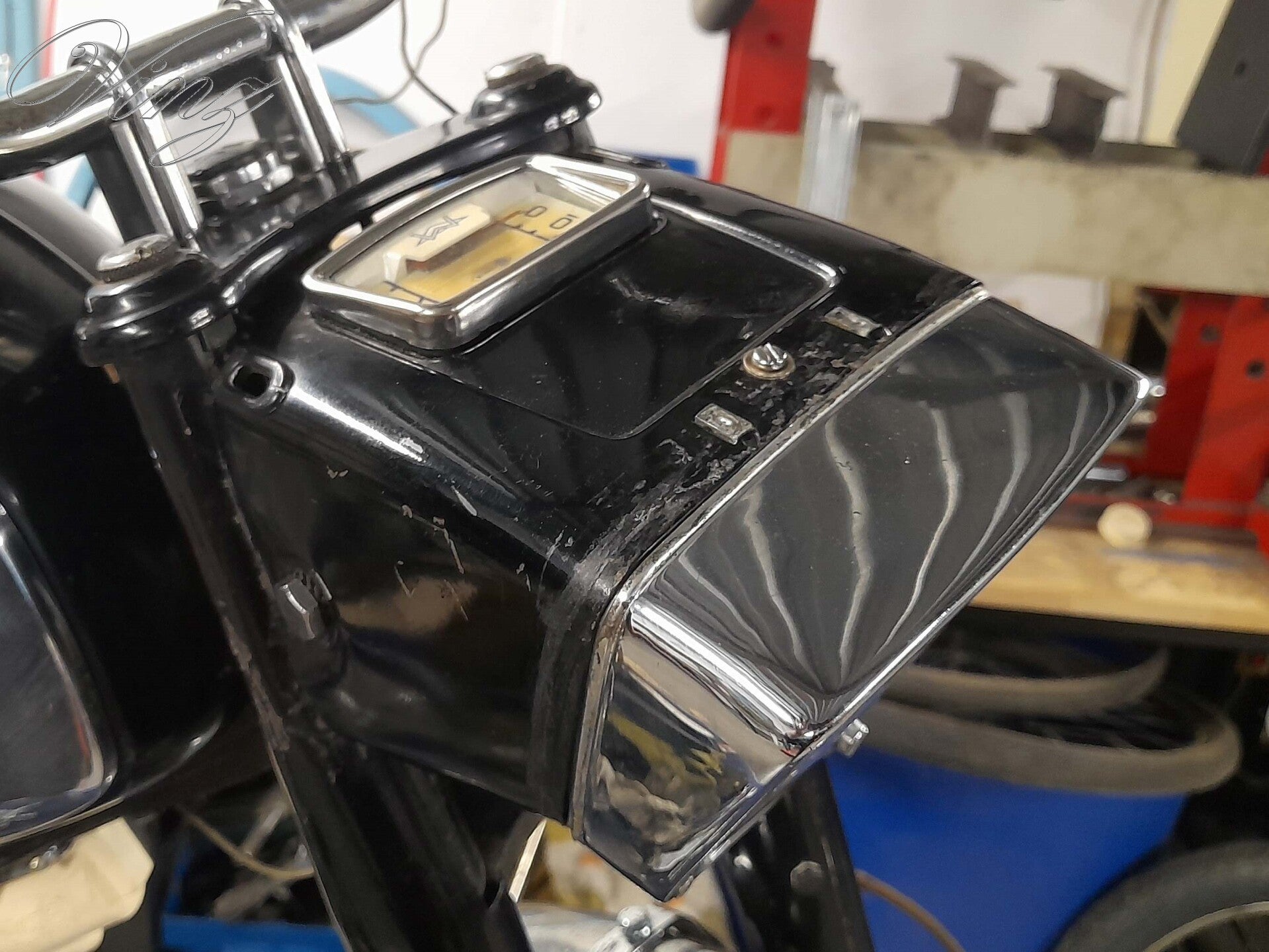 rétroviseur d'époque, tambour d'embrayage et grippe genoux.