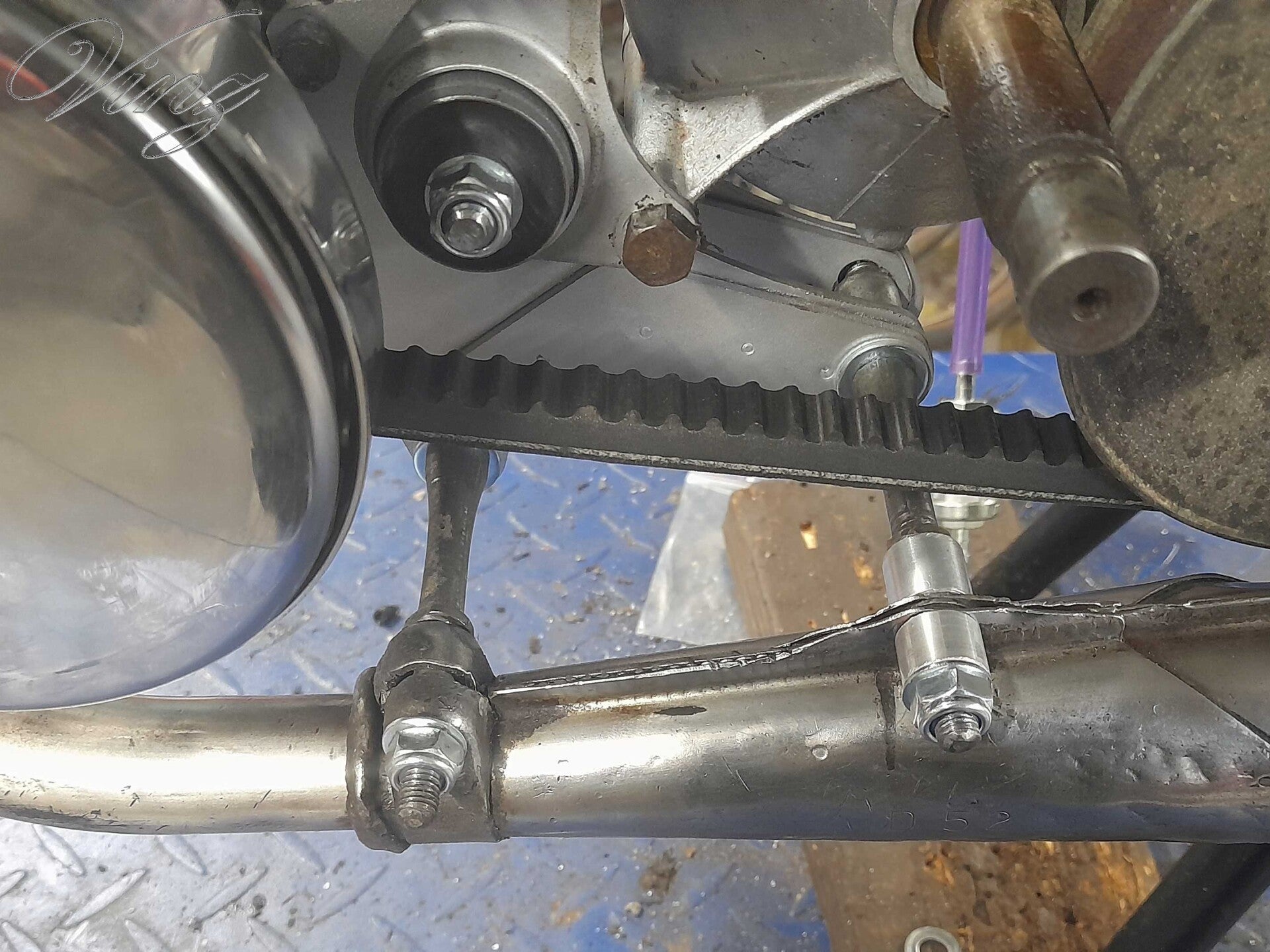 Il manquait un collier sur le silencieux, en attendant d'en trouver un, j'ai fait deux entretoises.