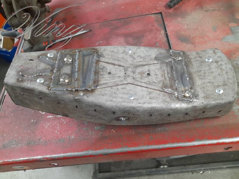 Je commence par la selle qui tien avec un bout de planche, je vais remettre en état la coque pour l'envoyer se faire refaire une nouvelle mousse.