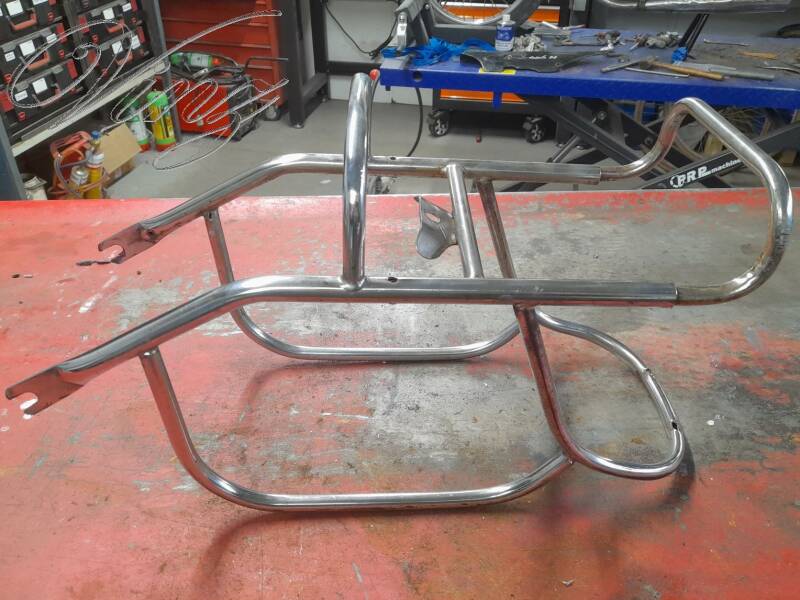 Il sera remplacé par un autre garde boue pas cabossé et rechromé.