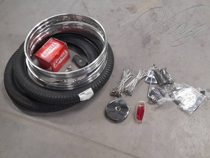 Jantes, pneus, rayons, pédales, cabochon de feu arrière, logo de réservoir, logo Spécial, poignées, caoutchouc de repose pied,