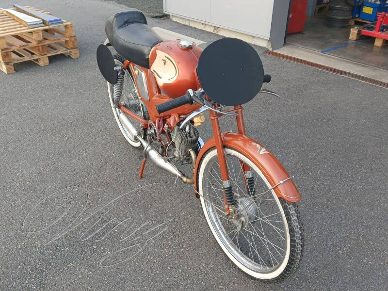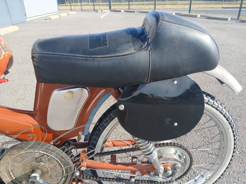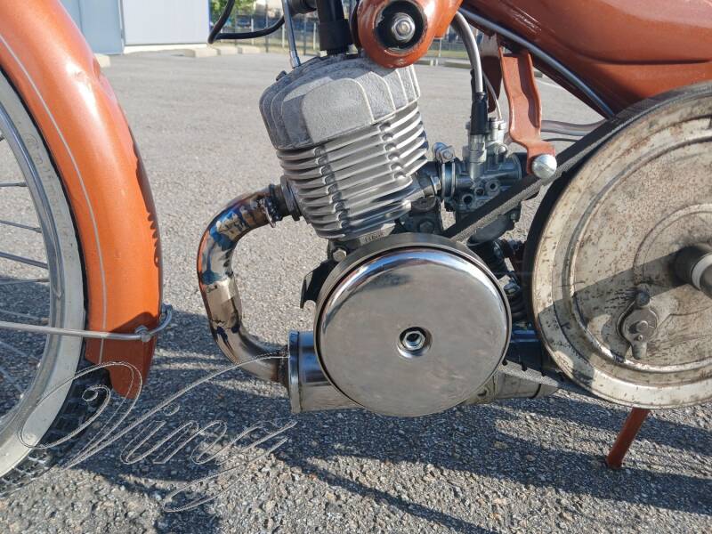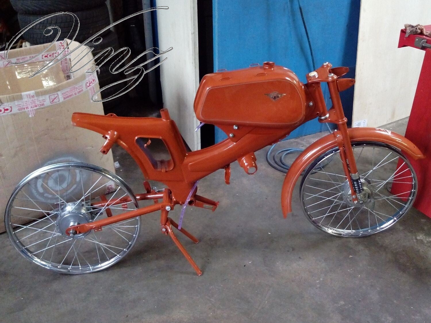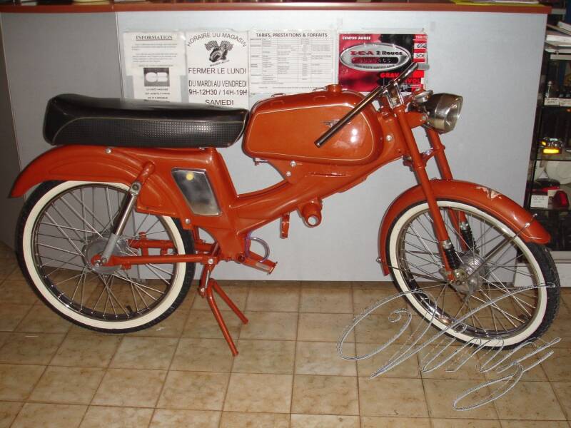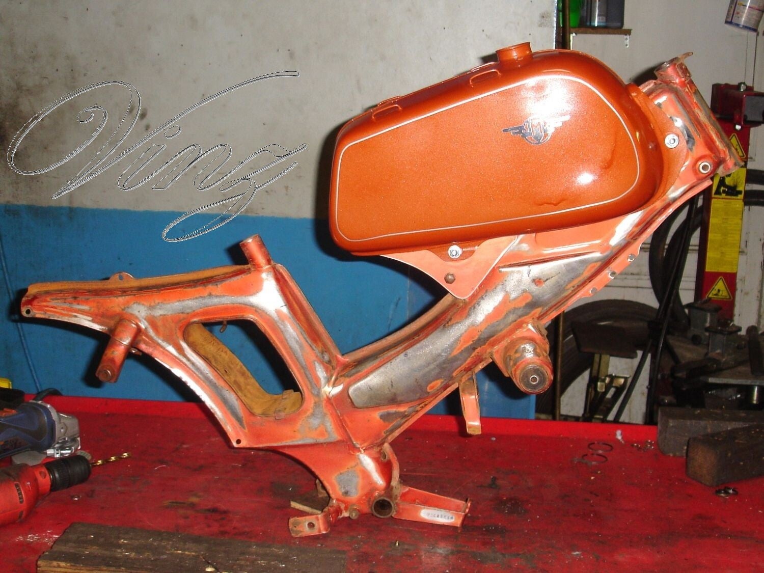 Un vrai bidza: un cadre et bras oscillant de SPR, une fourche de AV44 avec plongeurs de 51 club, le garde boue avant est en fait un garde boue arrière de AV44.