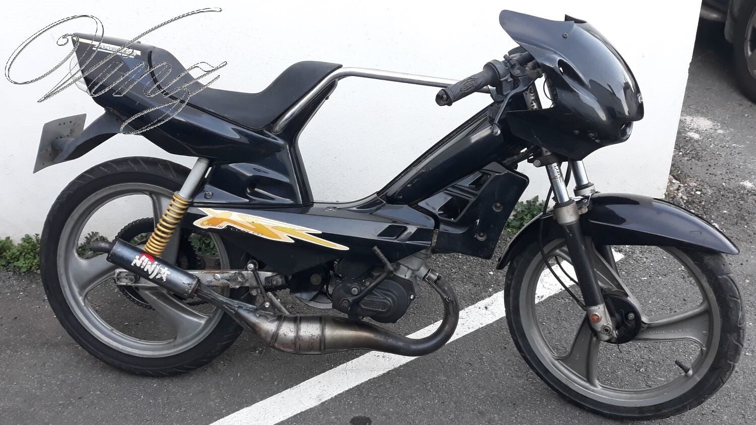 Celui-ci, c'est mon premier pot sur ma mob de course.