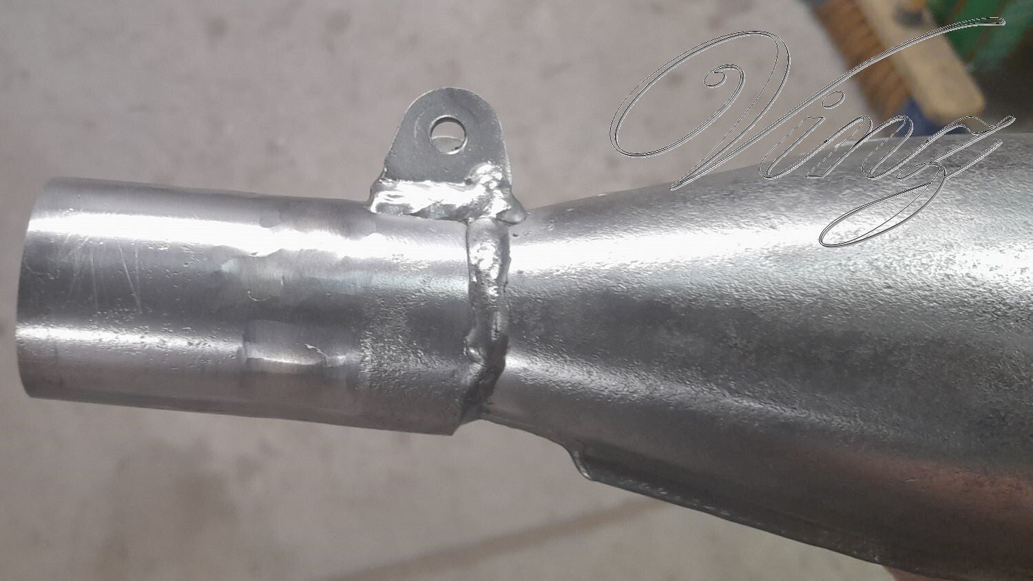 Sur celui ci, la restauration était déjà commencée. Des trous dans le coude étaient apparu lors du sablage. La cartouche raccourcie ne semble pas être la bonne (la référence noté dessus ne correspond pas).