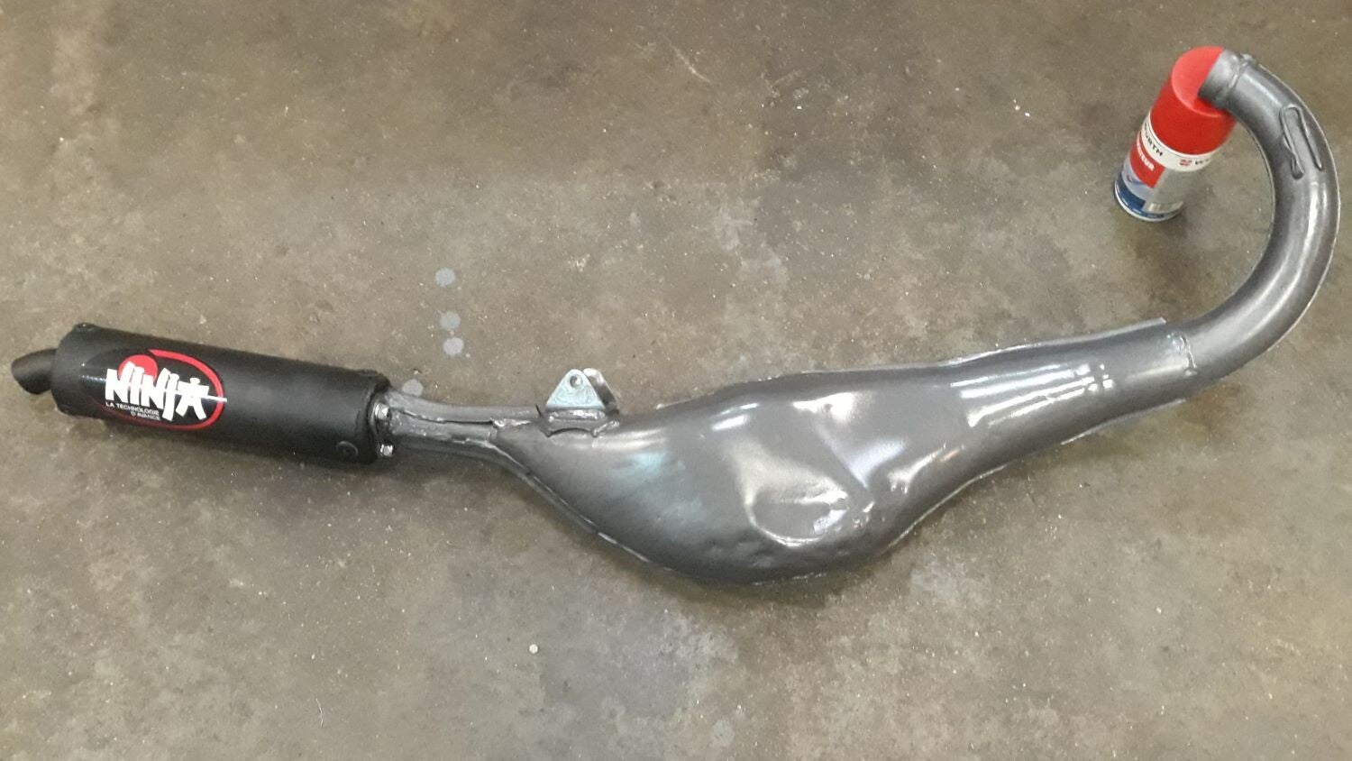 Je l'ai repeint en gris haute température pour masquer la soudure pour boucher le trou mais sa fait moche, je vais le resabler, chauffer les soudure et le vernir.
