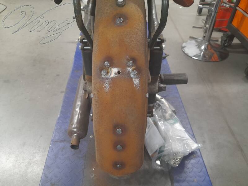 Il y avait quelques pièces de Motobécane fournis avec la moto, à l'époque je lui ai adapté des gardes boue de Z.