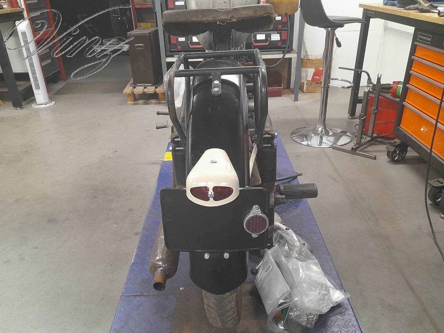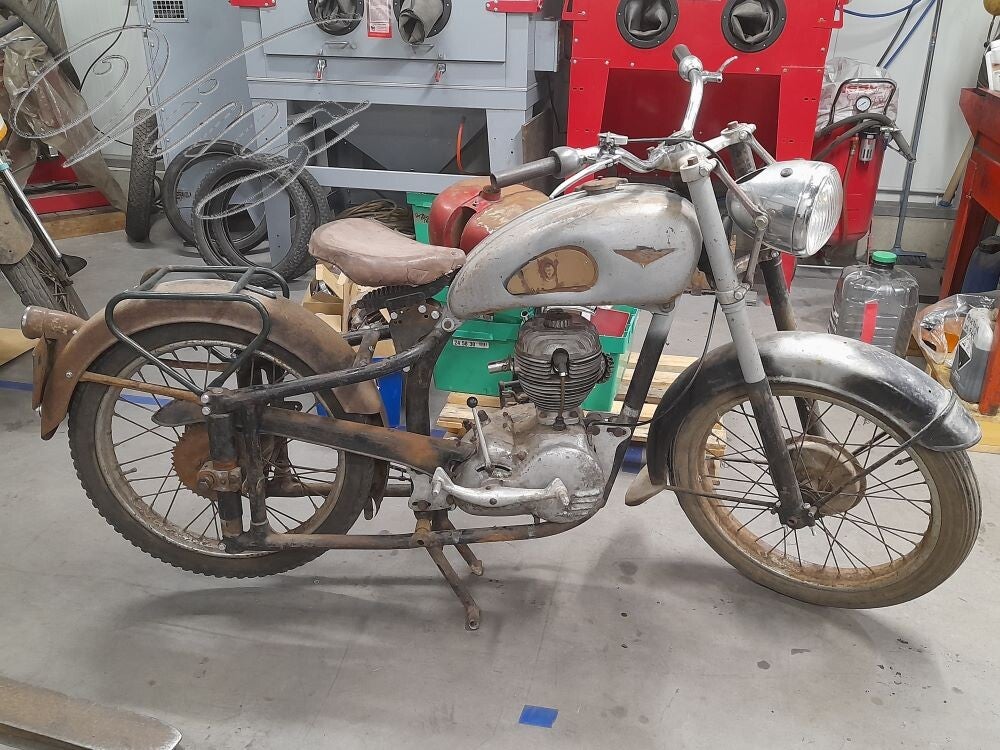 Elle était incomplète, il manquait: la selle, le garde boue arrière, le porte bagage, le garde boue avant, l'optique de phare, le carbu et peut être d'autre pièces mais je ne me souvient pas (sa fait 25 ans).