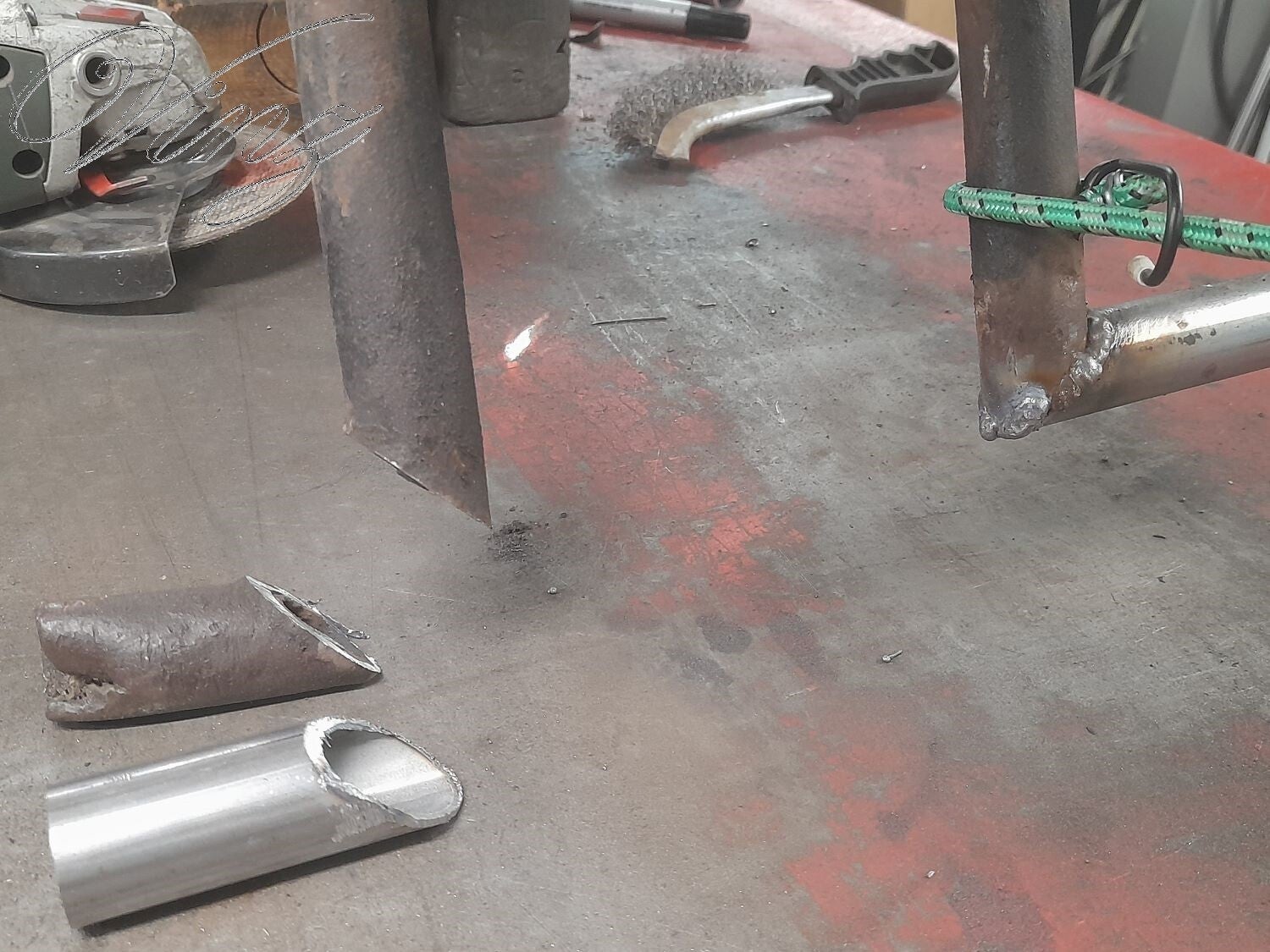 Redressage des bosses sur le réservoir, c'est loin d'être parfait, j'apprend à utiliser le tire clou.