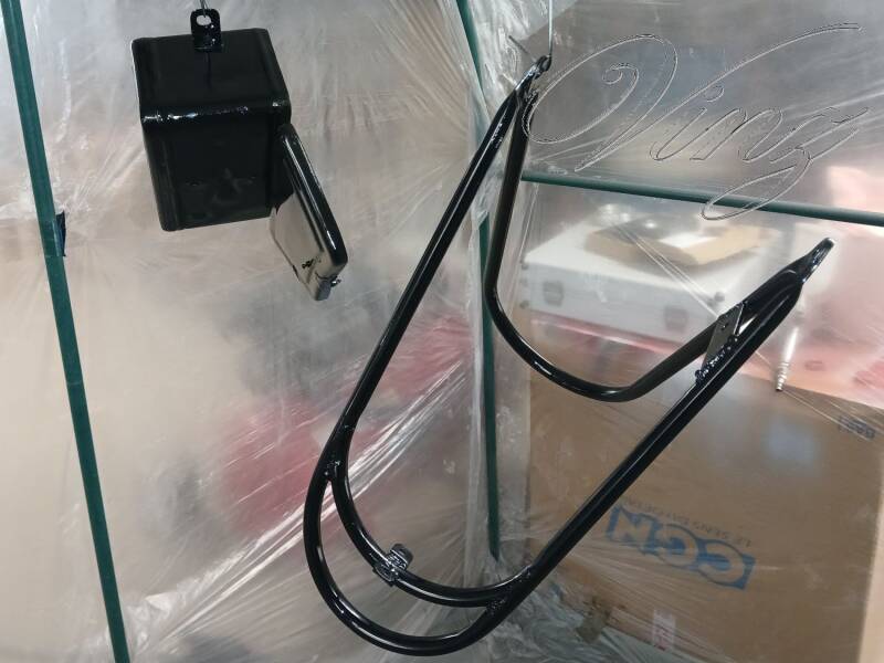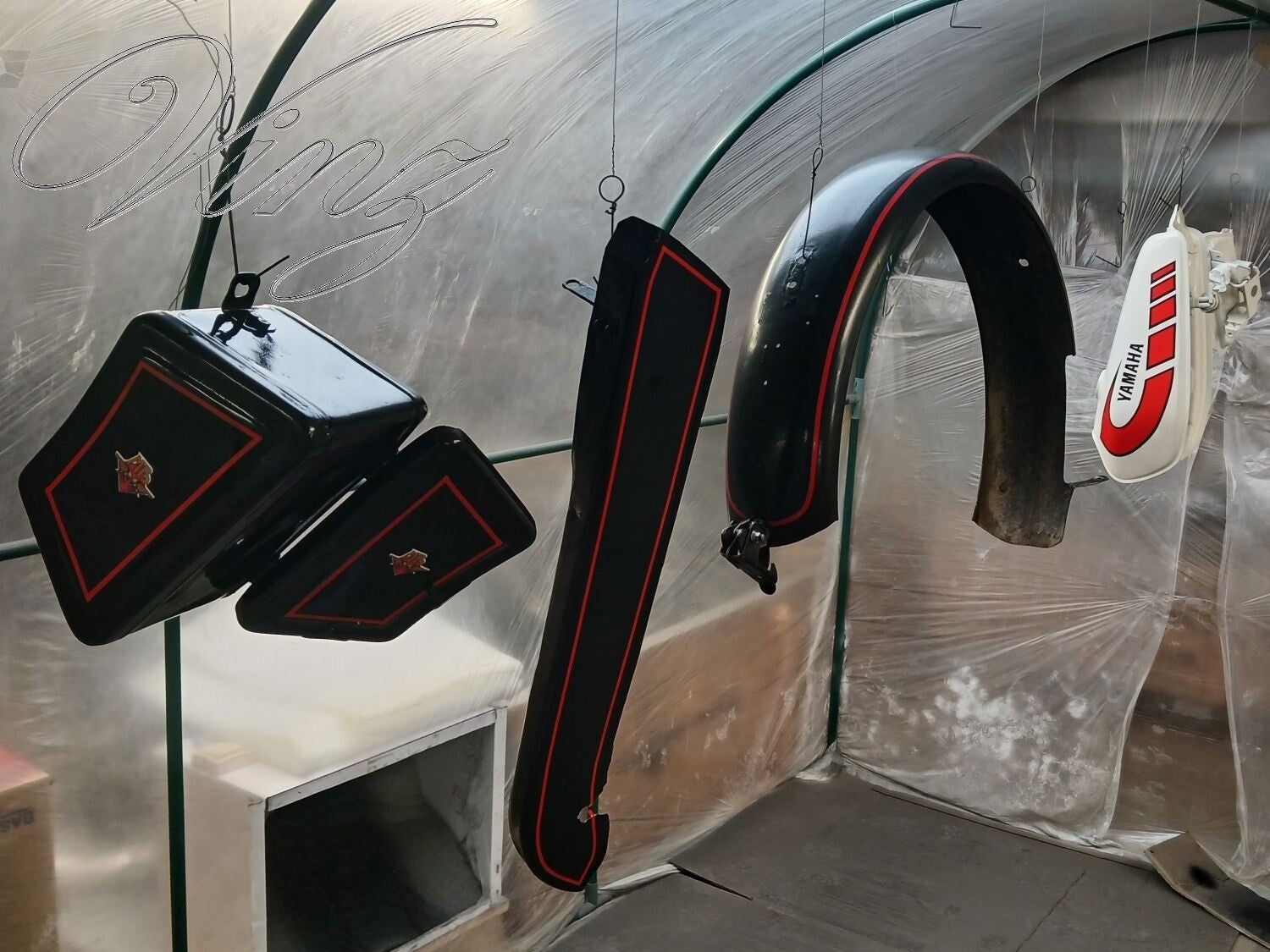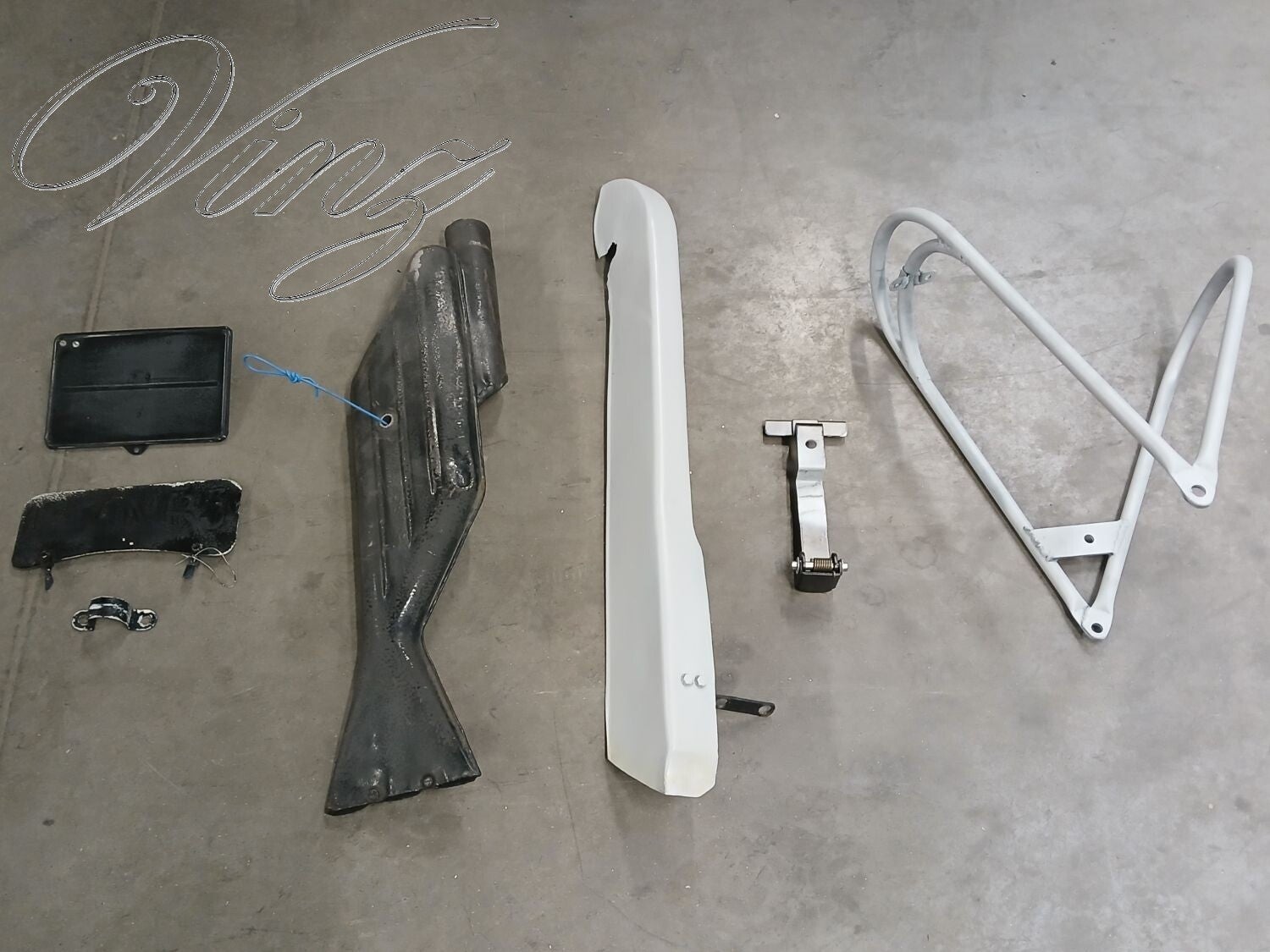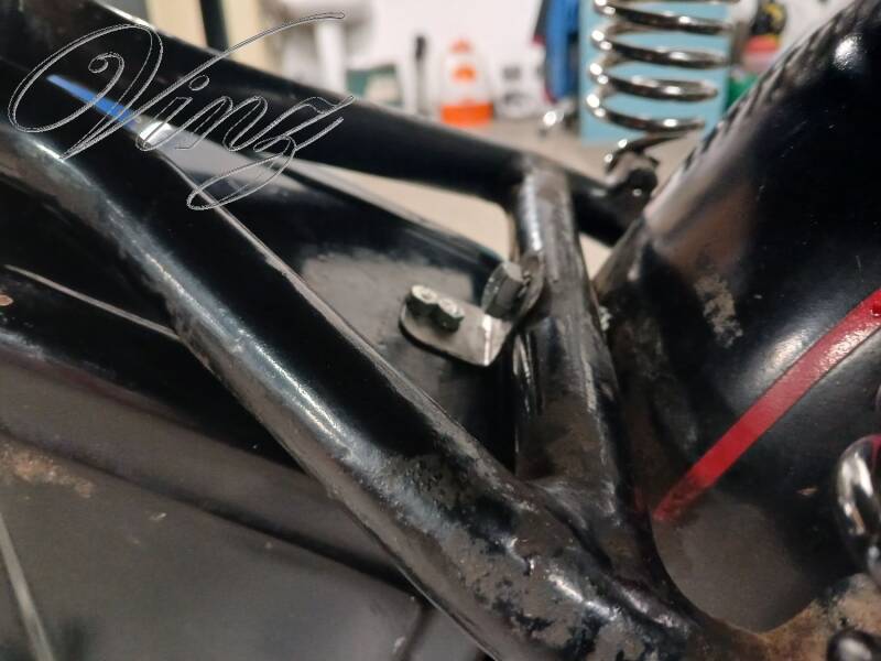 Décapage des fixation de guidon, réparation du frein de direction, nettoyage de la plaque de concessionnaire et décapage d'une biellette de fourche.