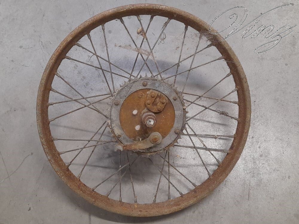 Le cache du moyeu arrière est abimé, j'avais dans mes pièces, une roue avec le même moyeu, j'ai donc remis en état celui-ci sans a avoir besoin de démonté celui sur la moto.