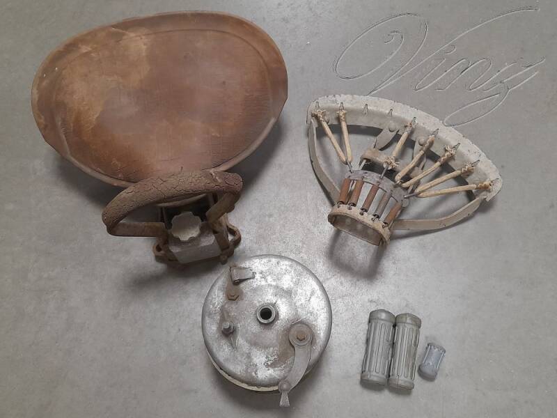J'ai acheté à la boutique du MCF, une armature de selle, un tand sad, un moyeu de roue avant (vendu avec une flasque de frein) + une autre flasque de frein qui correspond à ma fourche et un petit lot de caoutchouc.