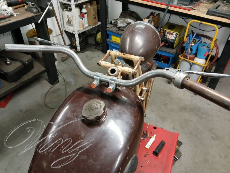 J'ai posé des colliers neufs d'époque mais le chrome d'un s'est écaillé au serrage et mis un guidon moins rouillé.