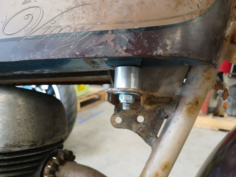 J'ai refabriqué deux vis de fixation de réservoir qui étaient manquante et fait des entretoises pour surélever le réservoir qui était trop proche du cache culbuteur.