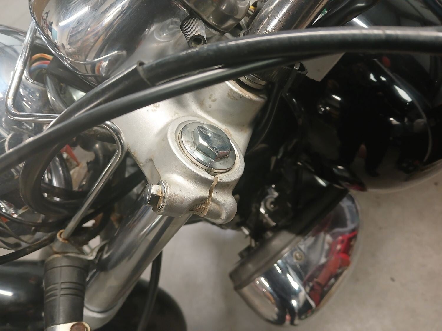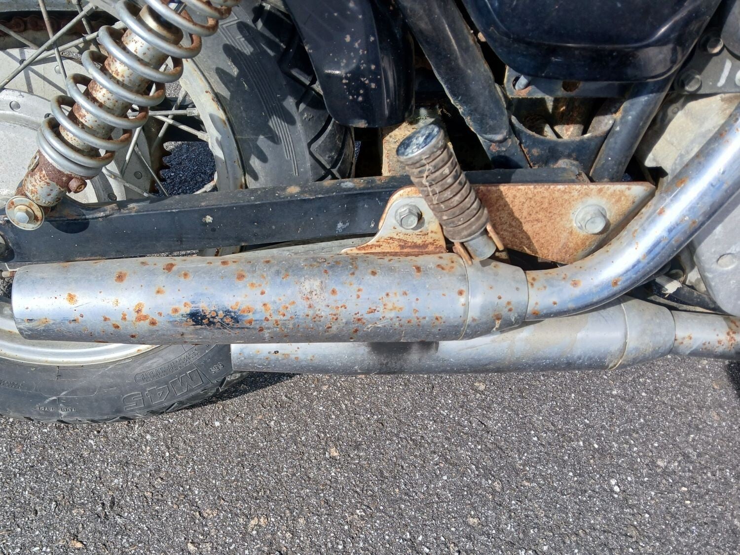 La moto était stocké sous un abri mais pas protégé des éléments et de l'humidité. la rouille est l'oxydation sont partout.
