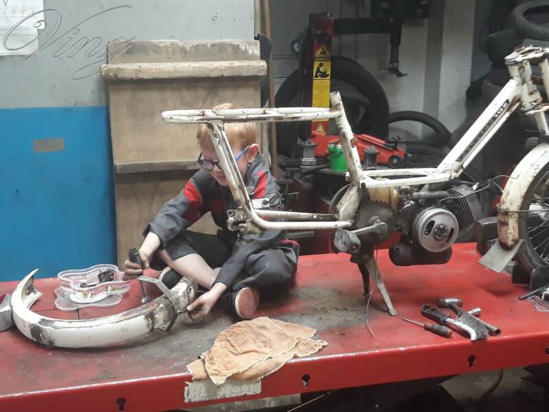 Pour celui-ci, il n'y pas d'urgence car les pieds de Léo ne touchent pas le sol quand il est assis sur la selle donc il sera fini que dans l'hiver.